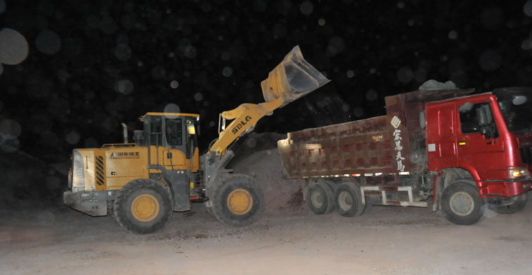 紫光商砼公司作为锦州北站的物料供应商,深知该项工作时间紧、任务重、且需求量巨大。我公司山场为满足工程需求,加大生产力度,力争保证工程顺利进行。为满足巨大的物料需求量,山场管理人员组织工人进行24小时全天候生产。天气越来越冷,夜间生产也充满不确定性,但我公司工作人员不喊苦不喊累,坚持按时按质工作,保证生产的顺利进行。