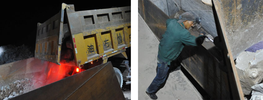为保障生产顺利进行,紫光商砼公司山场工人十分重视设备的养护,每天定时仔细擦拭设备,检查设备、运转车辆的零部件情况。翻斗车司机在装车时,都会搬走可能在车轮行驶轨迹上的石头,以减少车轮的磨损。对于这些爱岗敬业的好员工我们要点一个大大的赞。